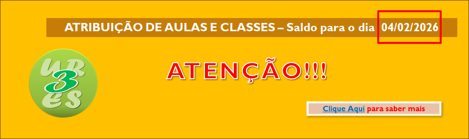 - Atribuição de Aulas – Saldo para o dia 04/02/2026Senhores(as) candidatos(as), A URE Sul 3 comunica que estarão disponíveis os seguintes saldos de aulas para … Leia mais »