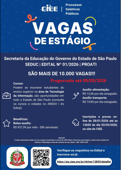 - Edital 02/2026 Processo seletivo de docentes para EJA Flexível da Unidade escolar …Lista de Deferidos e indeferidos – Clique Aqui Edital 002/2026 – Clique Aqui Leia mais »